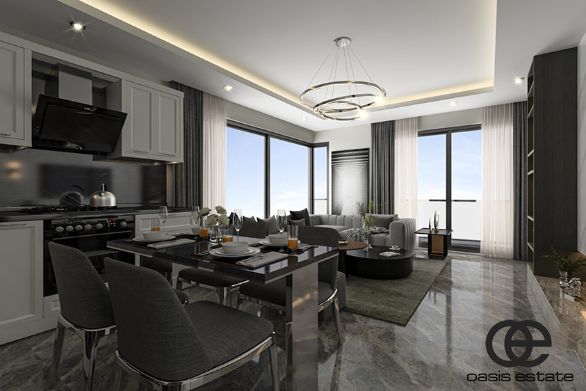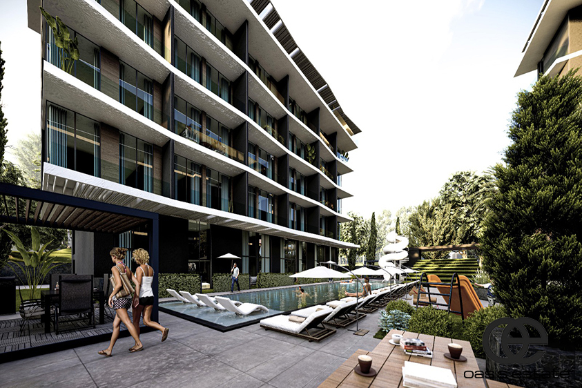 New Level 1 is a spectacular new project in the Cleopatra area of Alanya, located only 450 meters away from the famous Cleopatra Beach. What makes this project stand out is the views it offers – sea view, mountain view and panoramic views of Alanya city all combined in one. This complex consists of 2 apartment blocks with 1+1, 2+1, 2+1 duplex and 4+1 duplex apartment options. The duplex apartments are reverse duplexes, smartly thought out to maximize the views and for optimal living.