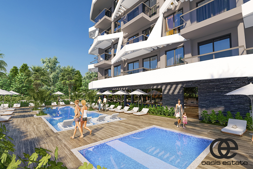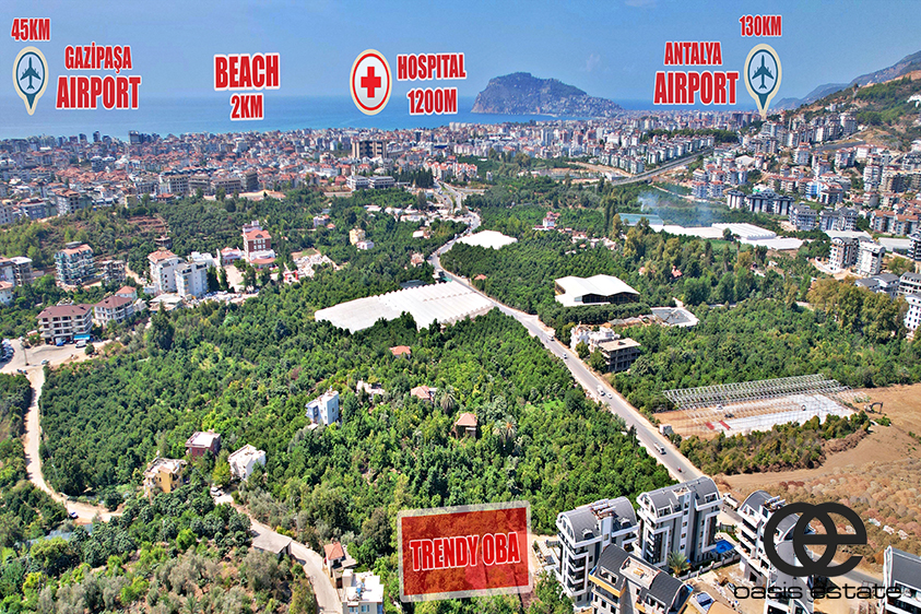 Trendy Oba Suit is located 2000 meters away from the sea and consists of only one apartment block with 20 apartments with options of 1+1 and 2+1 duplex apartments. All duplex apartments have a sea view and castle view! Top quality materials have been used in the interior as well as the exterior of this building. All air conditioners will be placed in a separate niche so that the balconies can be used to a maximum and also for aestethic purposes. There are shops and schools nearby and the distance to Gazipaşa Airport is 45 km. This residence has an indoor and outdoor pool along with a children’s pool. Many other amenities such as a garden, gazebo, lobby, sauna and bbq area are available.