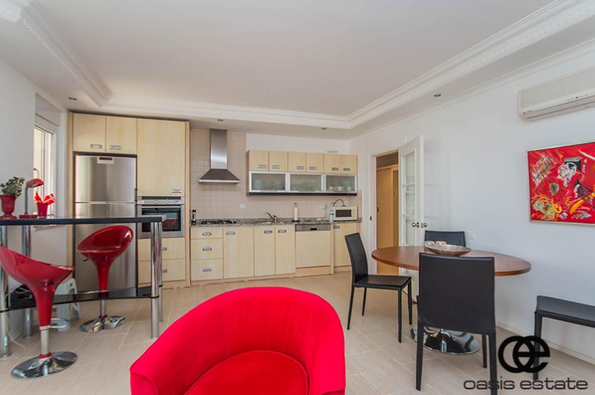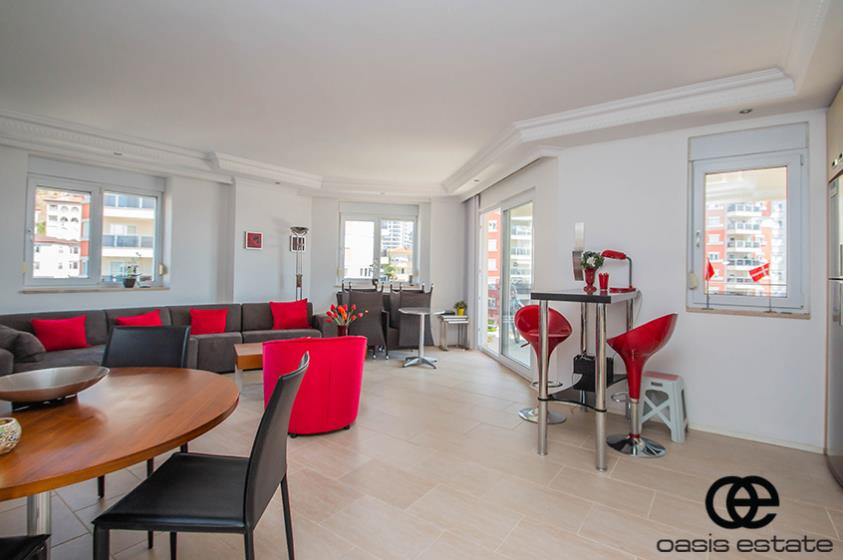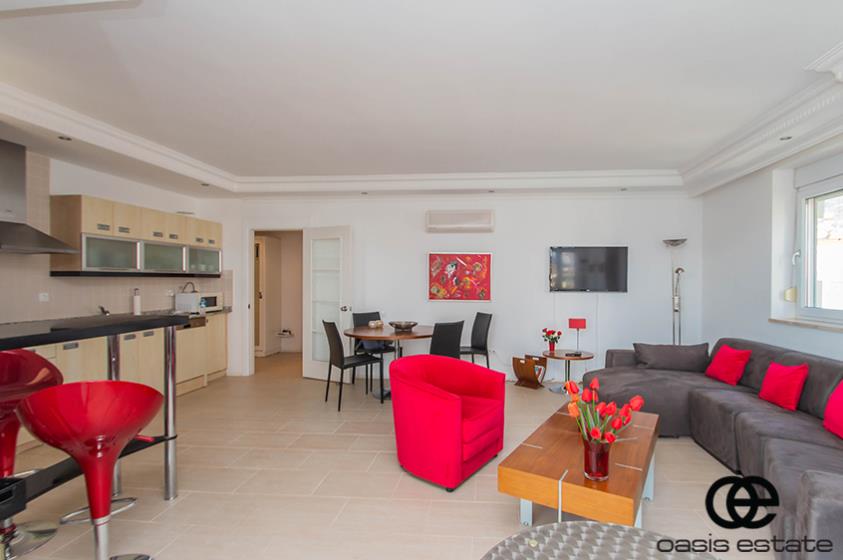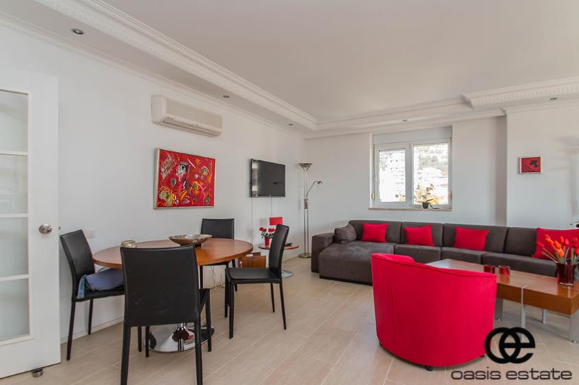 This charming apartment is in the Cikcilli area in Alanya. The bright and spacious apartment consists of 2 bedrooms, 2 balconies and an American Kitchen and a cosy living area.