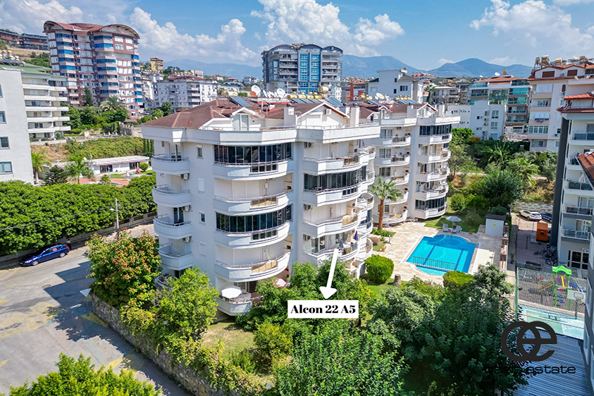 This well-kept one-bedroom apartment is located on the 2nd floor of a 5-storey building in a popular residential complex in Cikcilli, Alanya. The complex has two blocks and offers a pool, a well-maintained garden, and individual storage spaces in the basement.