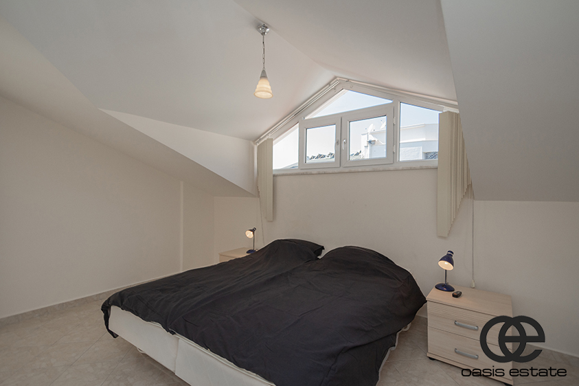 This charming apartment consists of 3 bedrooms, two of them located on the ground floor and one spacious bedroom located upstairs. There's an open-space kitchen and living room area at the entrance level of the apartment. There is a bathroom on each floor for convenience and both floors have living spaces to relax in. The entrance level balcony is ideal for having breakfast across a sea view or for evetryday meals and relaxation.