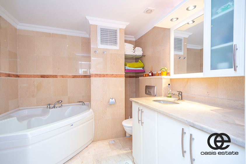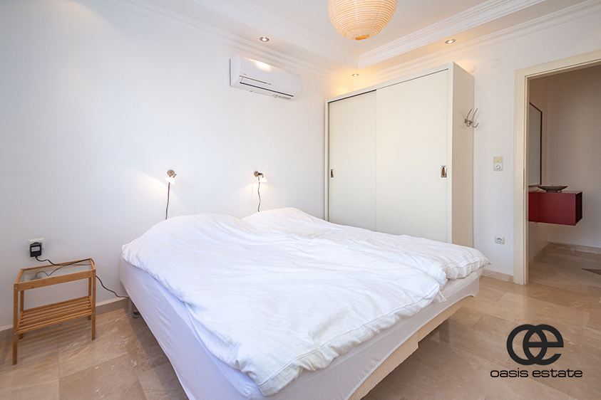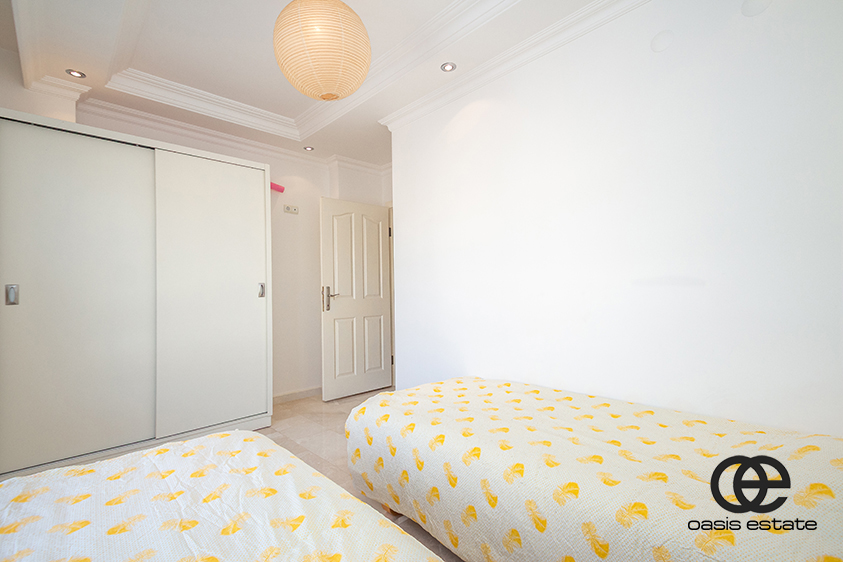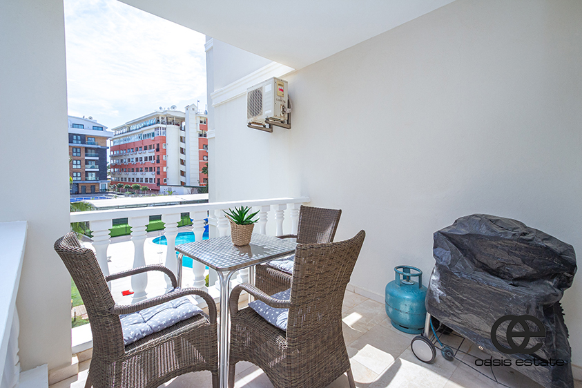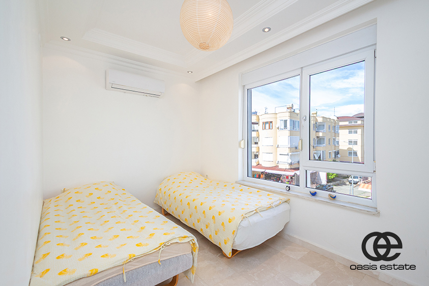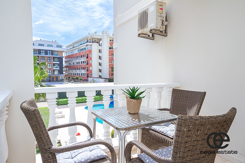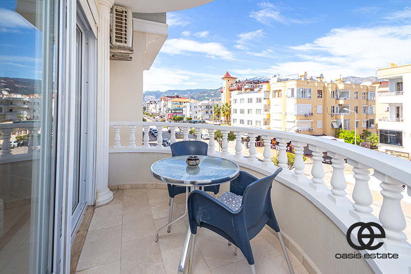 Two spacious balconies: one overlooking the charming streets of Oba, and the other facing the pool.