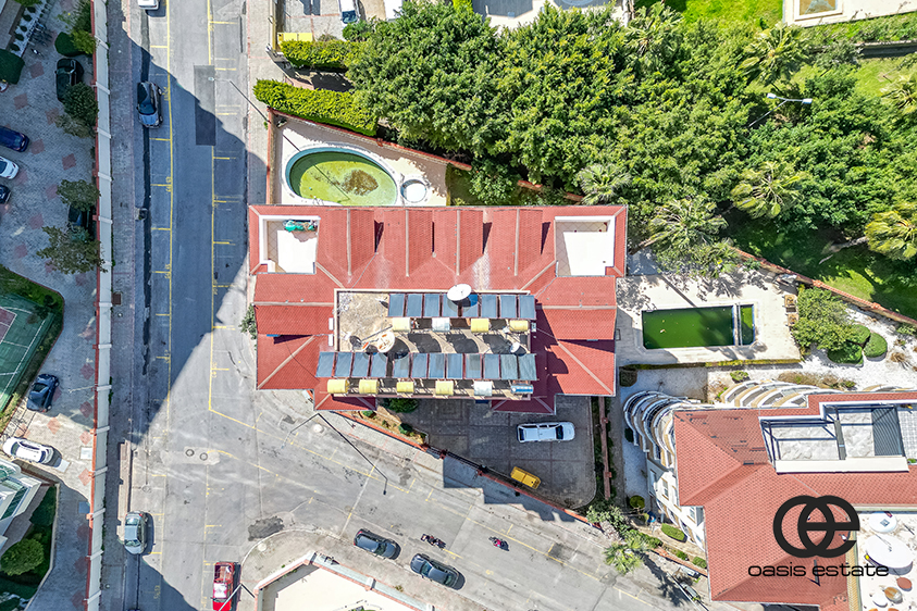 The apartment is situated on the 2nd floor of a 5-storey building. The building offers an outdoor swimming pool, a garden area and a private car park for residents.