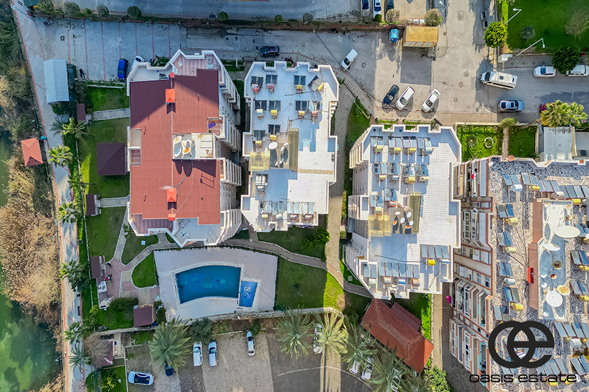 The complex itself provides a welcoming environment with a swimming pool, landscaped garden, and parking area. It is set right beside the Dim River, where a scenic walking route runs along the water, ideal for relaxing strolls. The beach is very close and can be easily reached through a safe underground passageway.