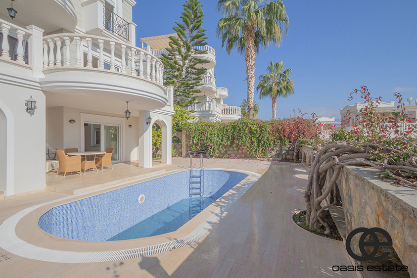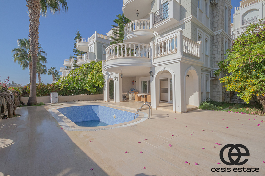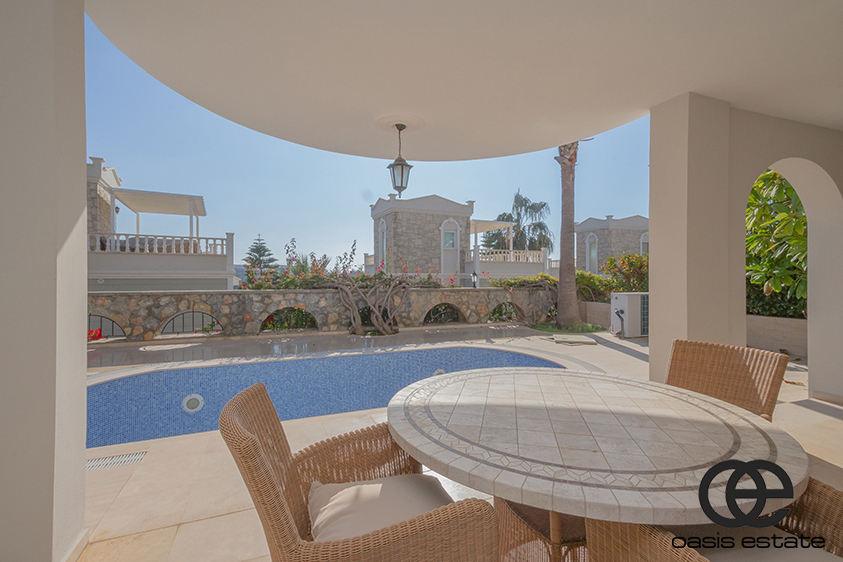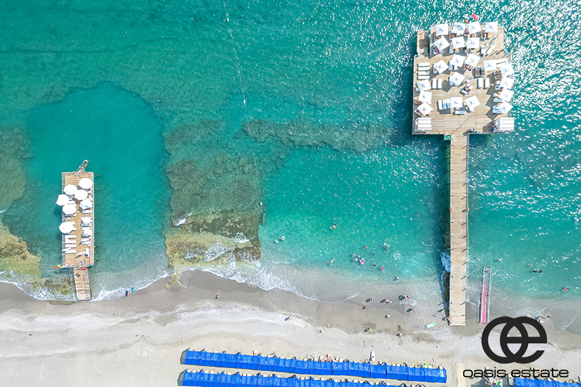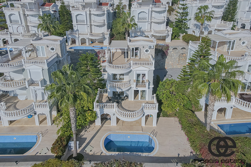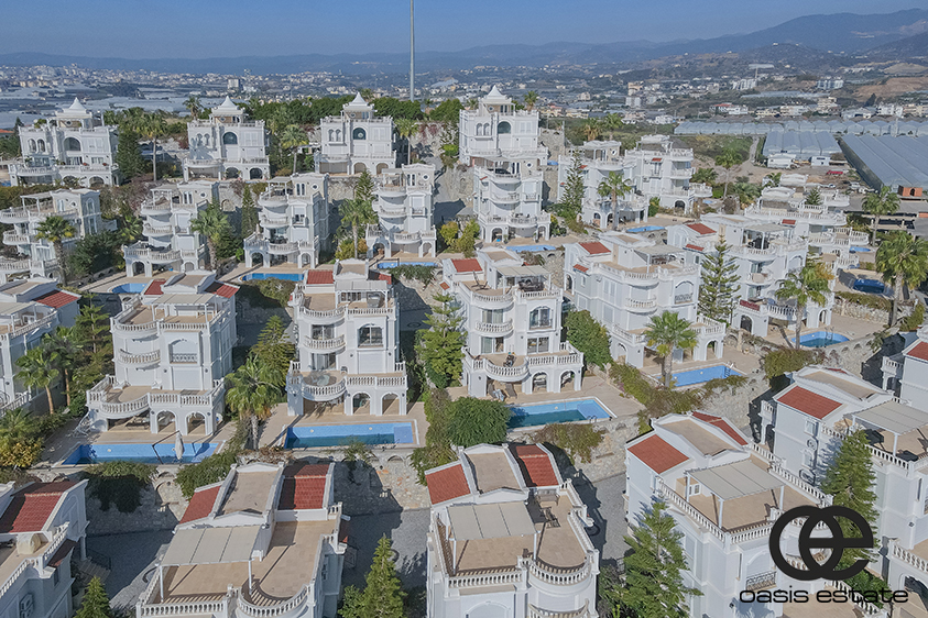 This villa is part of the exclusive Oasis Club II residential villa complex, located in Konakli, Alanya. Konaklı area stands out by being one of the only places where it's possible to own a villa on the beach side of the main road, making it central yet private and noise-free.