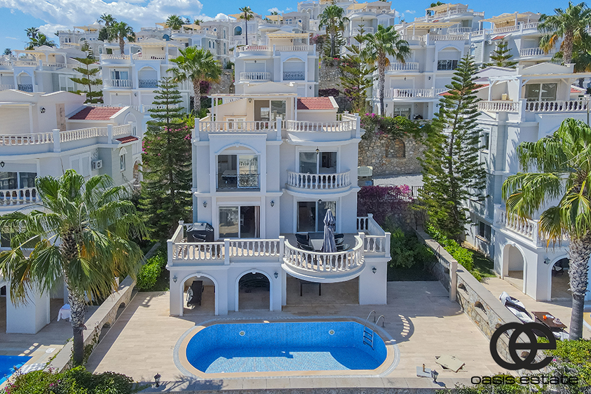 This exquisite villa situated in the exclusive complex of Konaklı, Alanya is within walking distance from the gorgeous Mediterranean Sea. This remarkable 4-bedroom villa combines the tranquility of seaside living with the conveniences of being close to city life in a seamless blend of luxury and comfort.