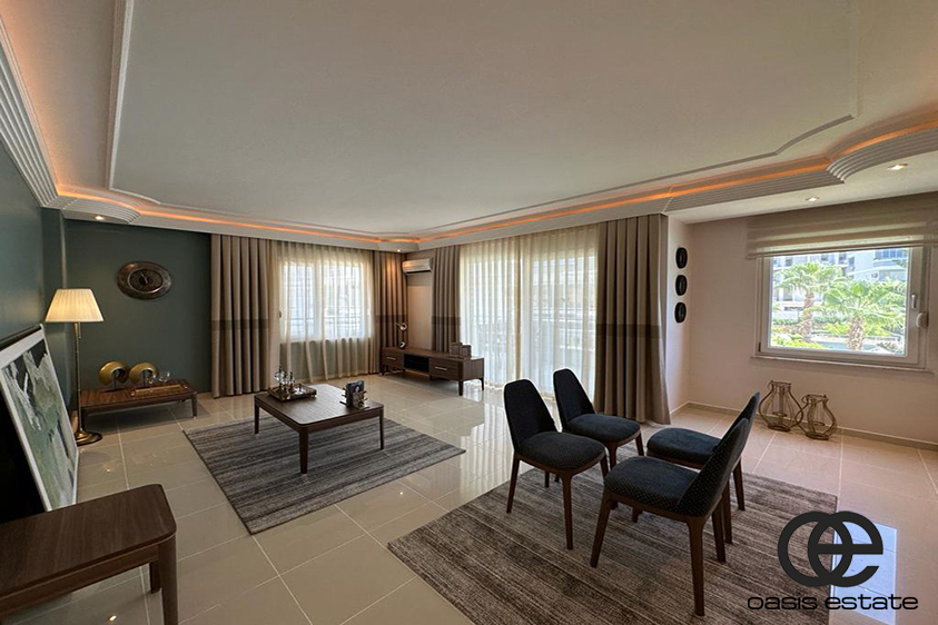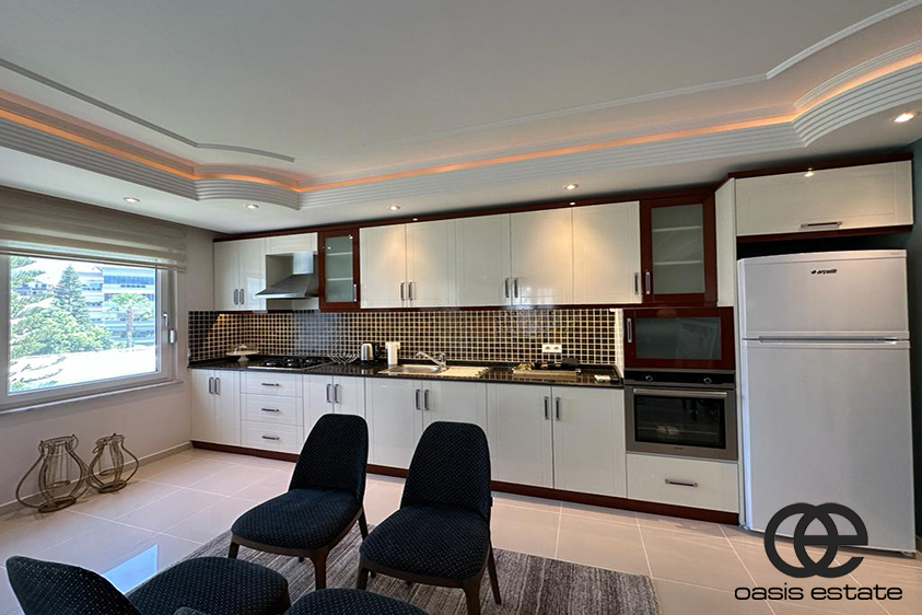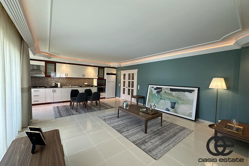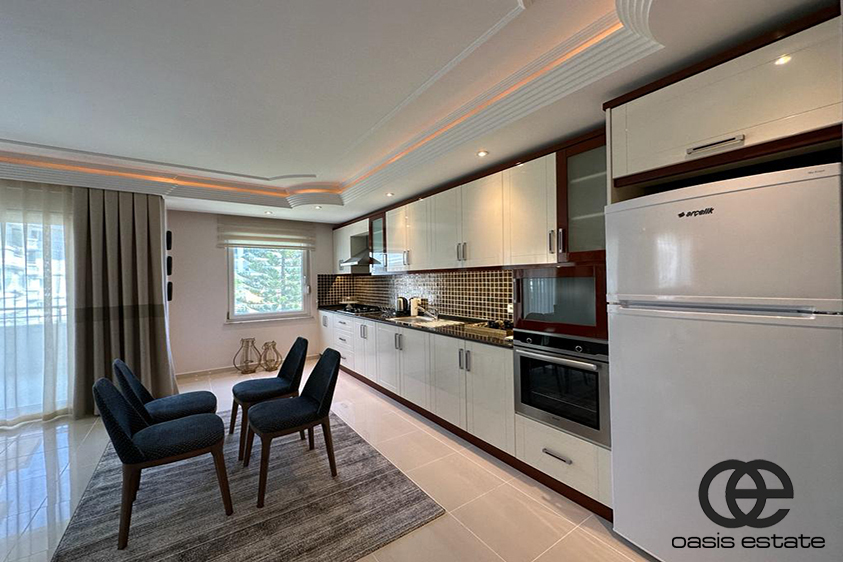 Located in the picturesque Oba district of Alanya, only 800 meters from the Mediterranean Sea, this charming 2-bedroom, 2-bathroom apartment represents coastal living. Situated on the second floor of a 4-storey residential complex, this ready-to-move-in home is fully furnished with designer furniture, tastefully decorated, and equipped with all the modern conveniences you could ask for.