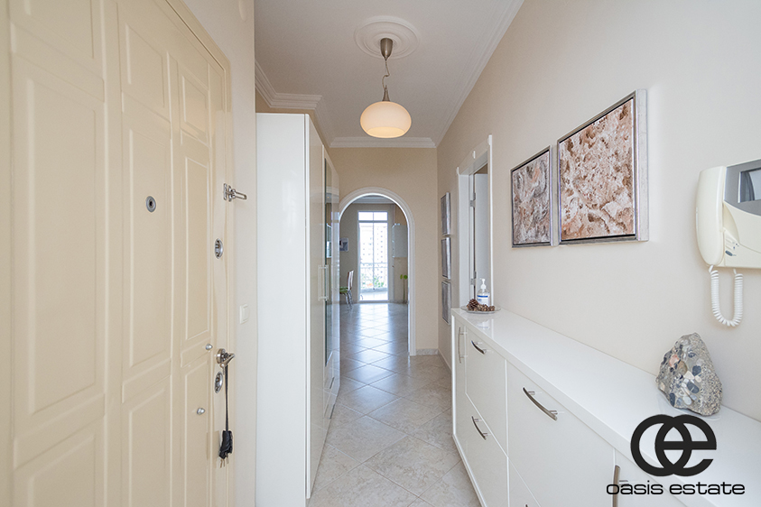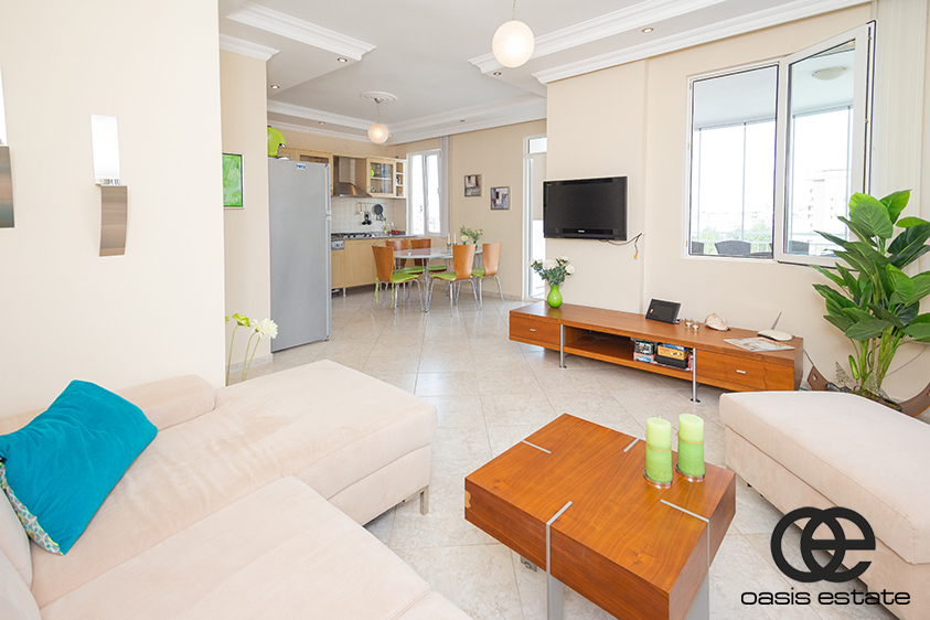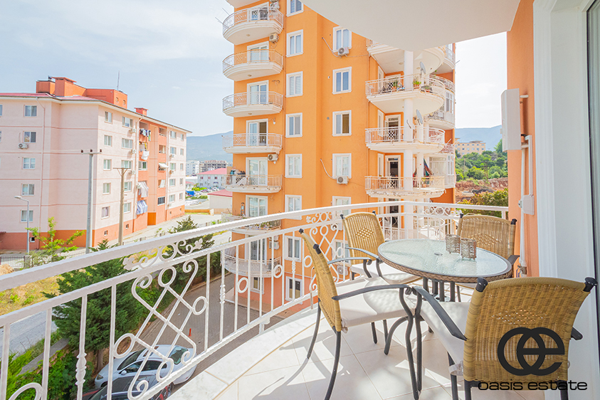 Step into this fully furnished apartment nestled in the heart of Tosmur, Alanya. Situated in a well-maintained residential complex named Orange Garden, this 2-bedroom, 2-bathroom apartment boasts a hint of sea view and is surrounded by serene green trees, creating an atmosphere of tranquillity.