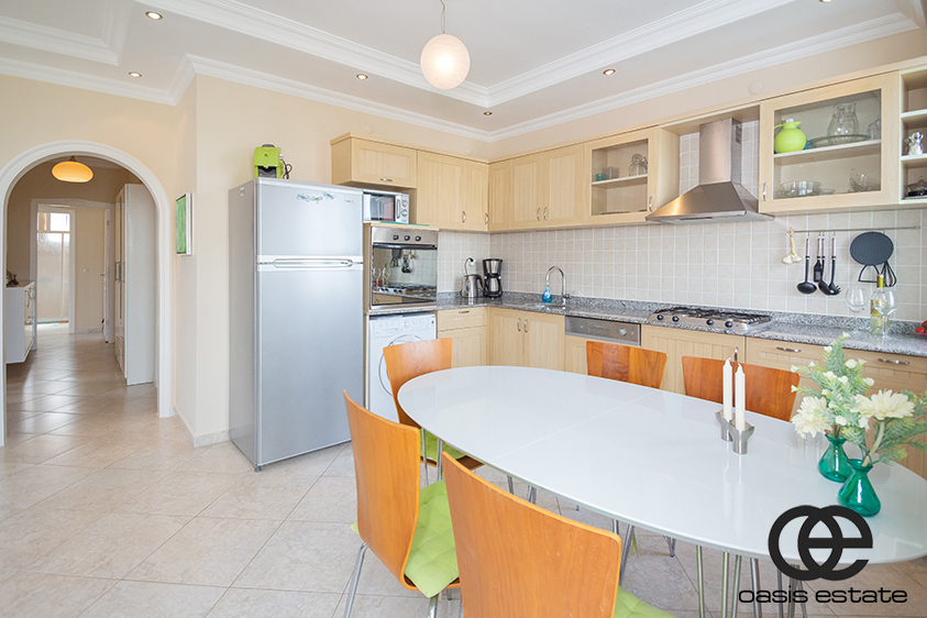 This ready-to-move-in apartment offers a spacious kitchen-dining room area, fitted with all necessary white goods, including a newer washing machine. The open plan design ensures easy flow throughout the apartment, offering a cohesive living experience.