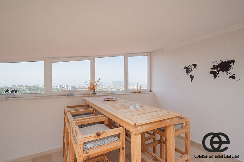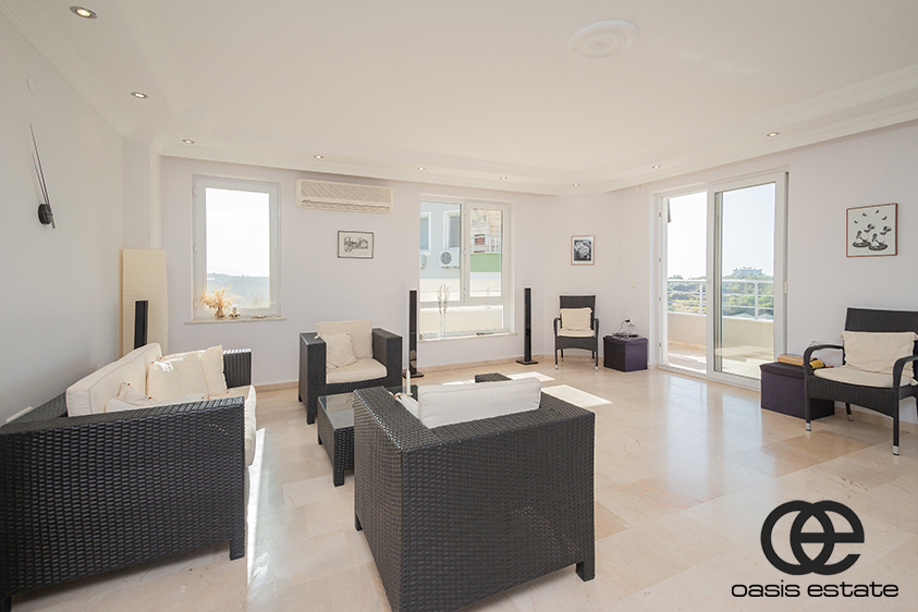 This 3-bedroom penthouse apartment is located in the upper Oba area of Alanya, in amongst nature and a serene environment. The apartment enjoys fantastic sea views, views of the historic Alanya Castle and is surrounded by the green nature of Oba.