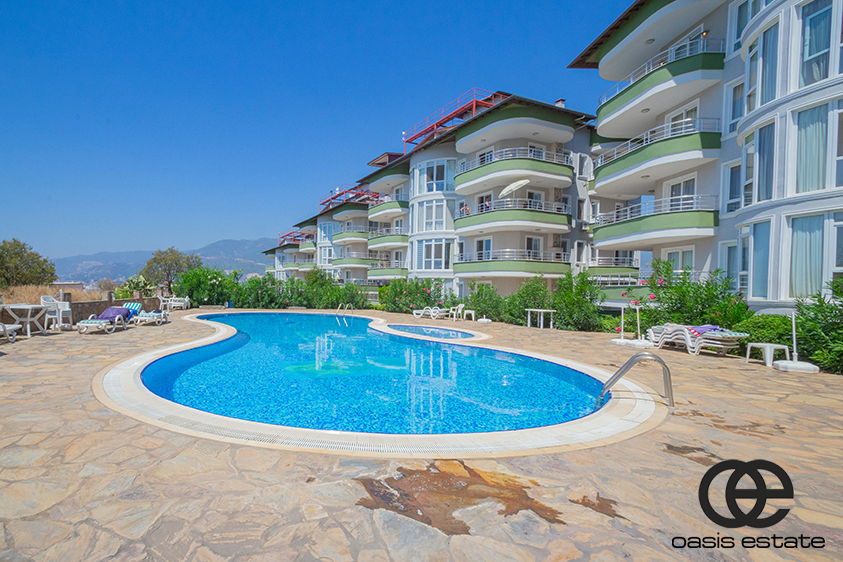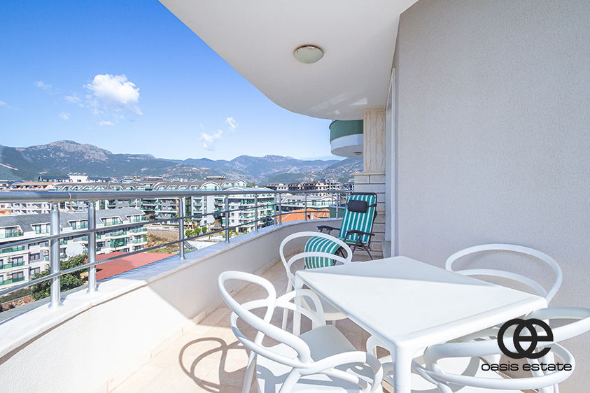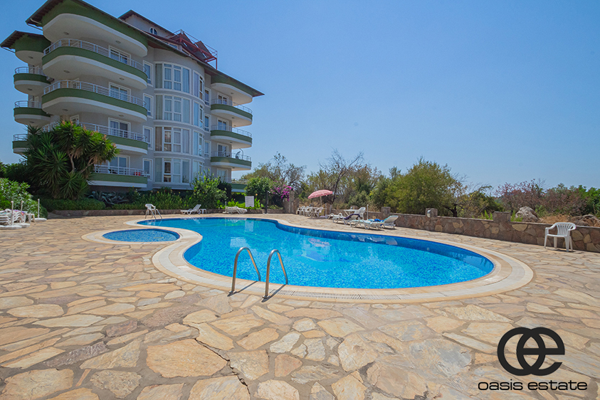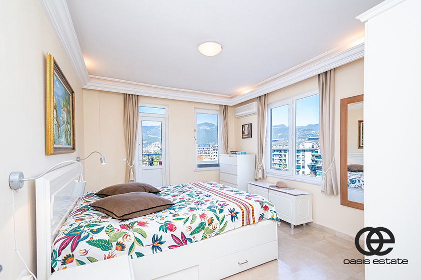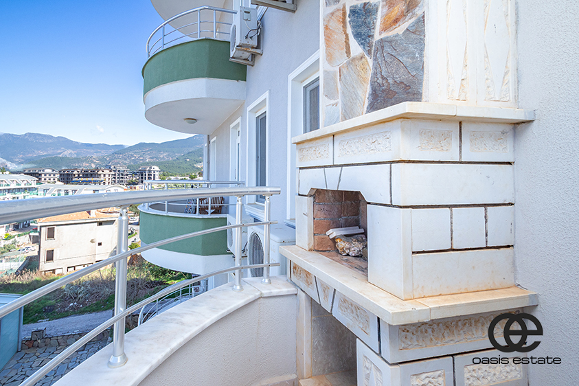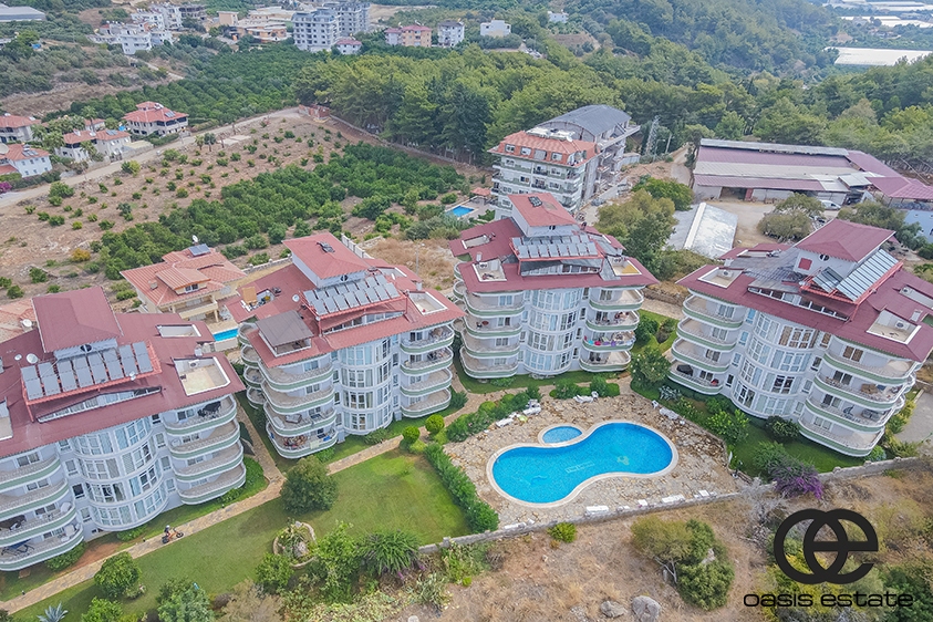 This spacious 2-bedroom apartment is located in Oba, Alanya, within the peaceful Orient Hill complex. The area is quiet and residential, offering a calm living environment away from city traffic and noise.