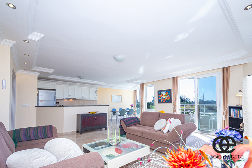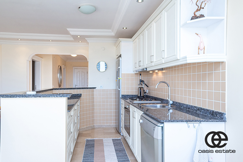 The apartment is bright and well-sized, with two comfortable bedrooms and two bathrooms. The layout is practical and open, making the space feel airy and easy to live in. The open-plan kitchen is fully installed with white goods and finished with a black granite worktop. It connects directly to the living area, creating a spacious and functional living space. A large balcony offers open sea views along with garden and nature views. The balcony is private and spacious, ideal for relaxing or spending time outdoors.The apartment is fully furnished, suitable for all year long living and ready to move into.