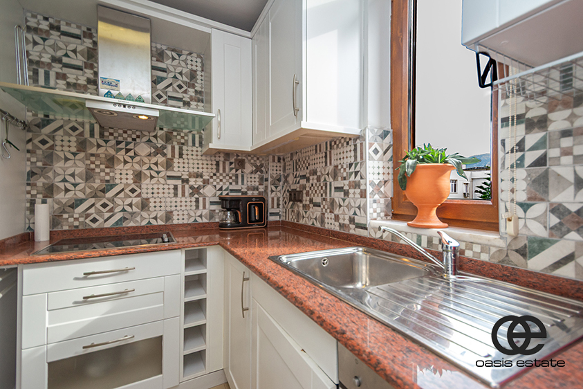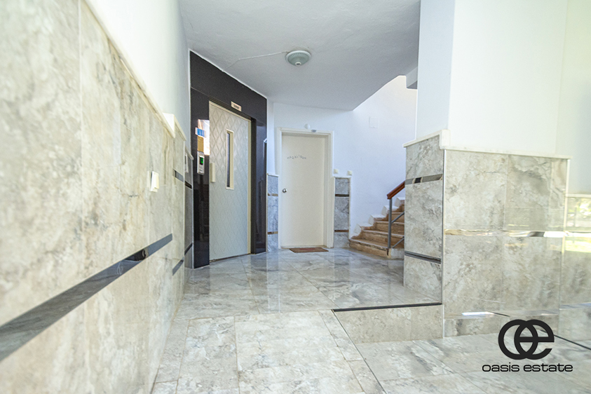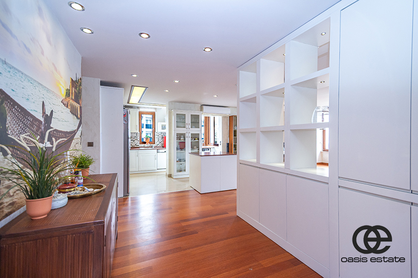 The apartment has an open-plan layout with a fully equipped kitchen fitted with Siemens whitegoods and granite worktops. The living area and kitchen have electric shutters, and all other rooms are fitted with manual shutters. The floors throughout the apartment are high-quality wooden material. The bathroom includes a modern walk-in shower. The property is sold exactly as seen in the pictures, making it ready for immediate use.