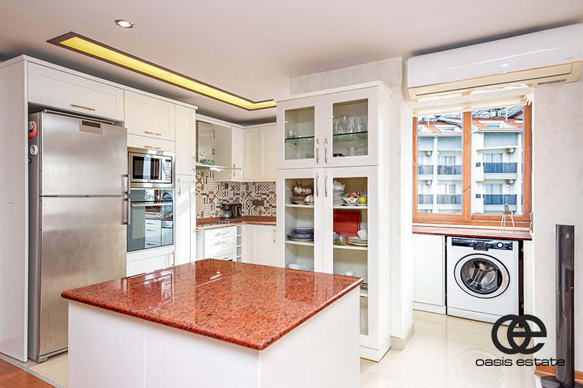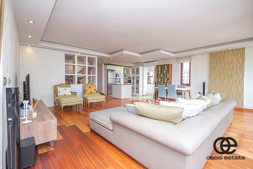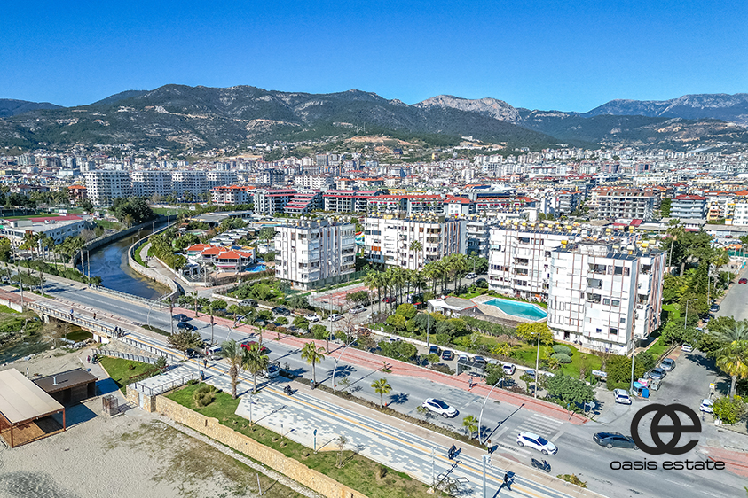 This three-bedroom apartment in the well-known Salur Sitesi complex in Oba offers a rare chance to live directly on the seafront. With full sea views, Alanya Castle views and mountain views, the property combines comfort with an unbeatable location.