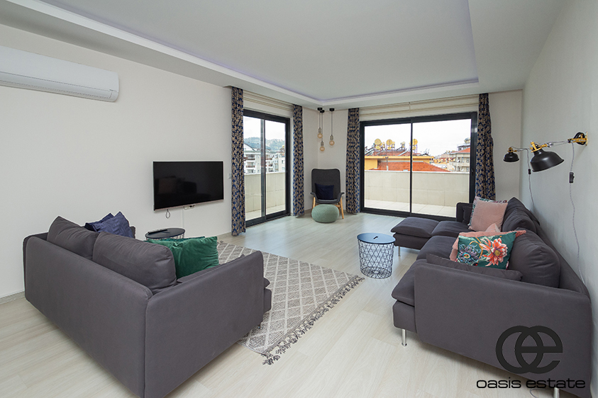 This fully-furnished penthouse apartment in the heart of Alanya offers an impressive 240 square meters of luxurious living space. This 4-bedroom, 3-bathroom gem is the combination of style and sophistication, offering lots of fantastic features.