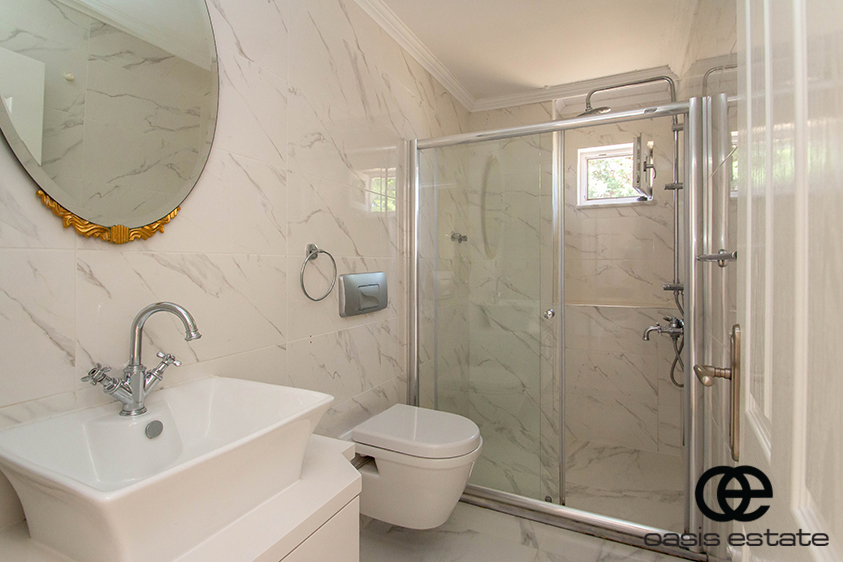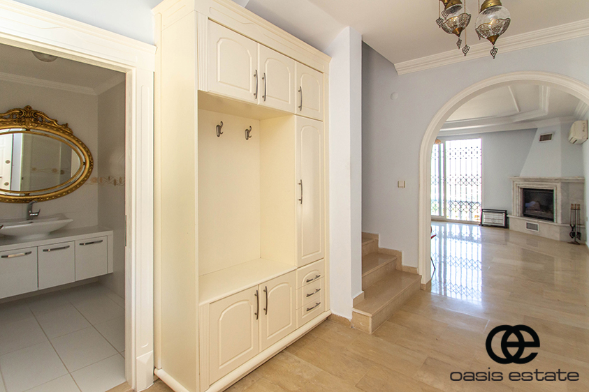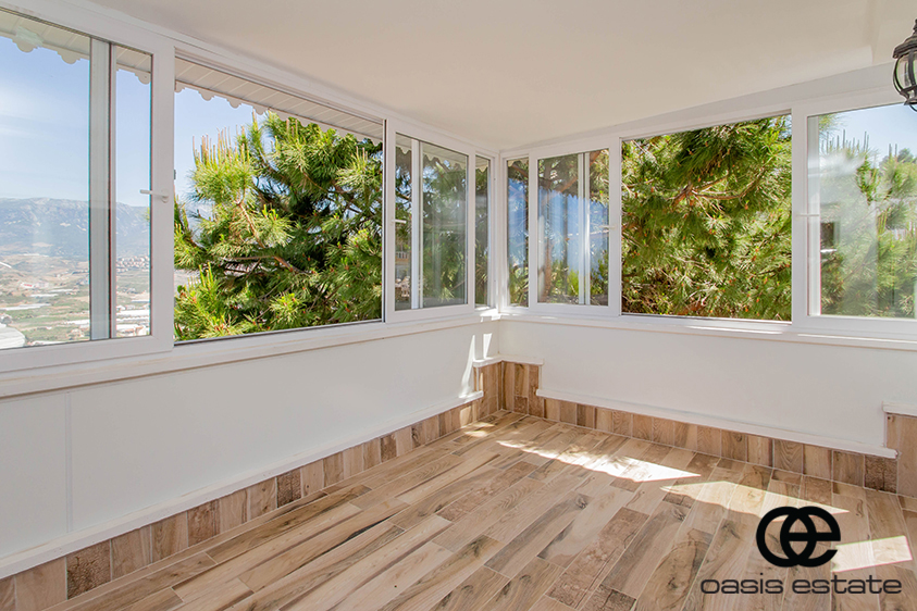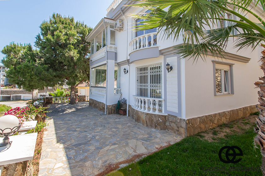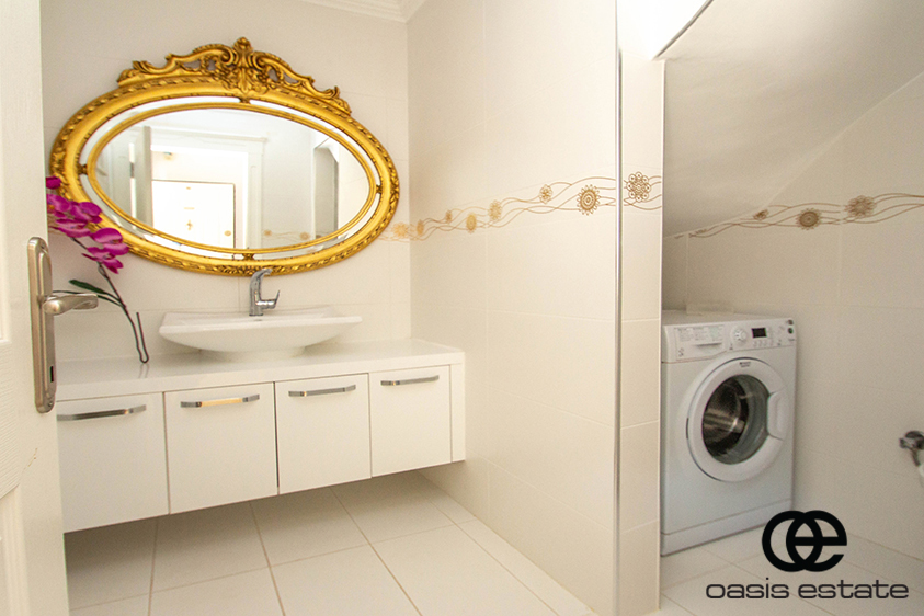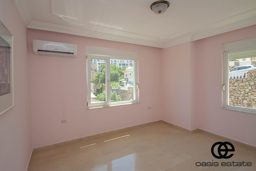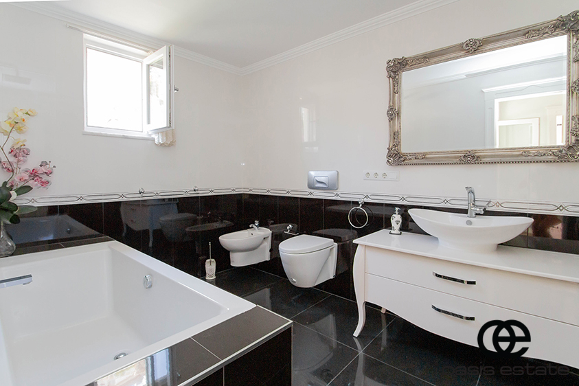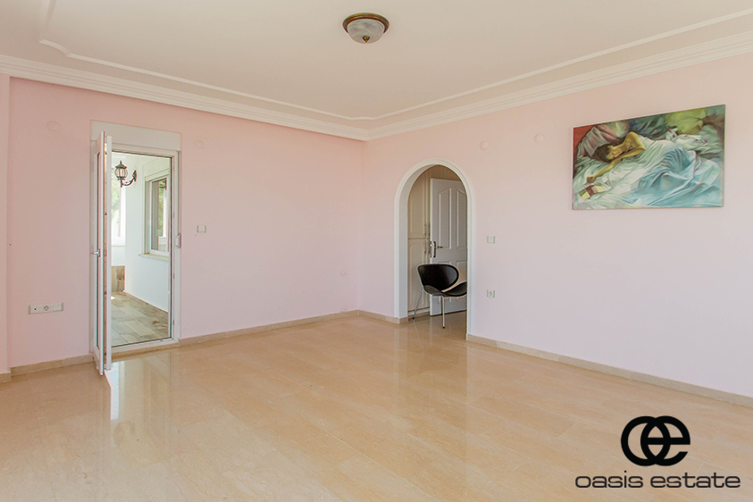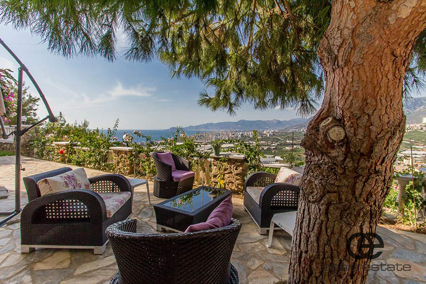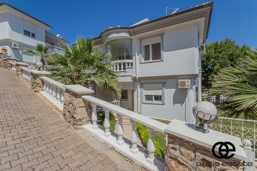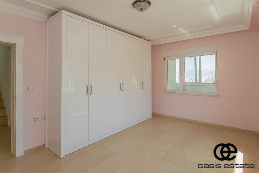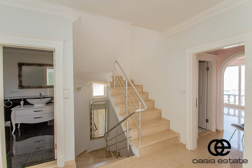 Cozy villa with 3 bedrooms and extra-ordinary interior facilities such as super modern kitchen with glass doors, well-appointed bathrooms and 2 winter gardens with glass part and views of Alanya and the Mediterranean. Garden with space for construction of own private pool.