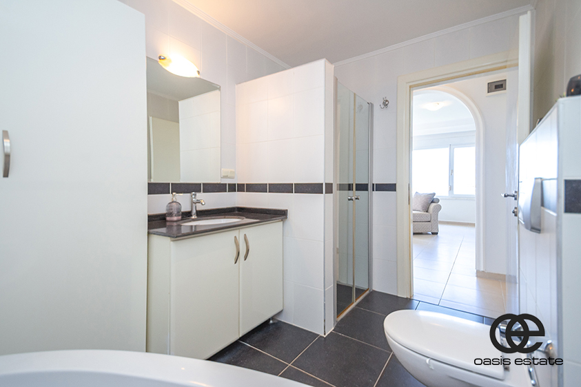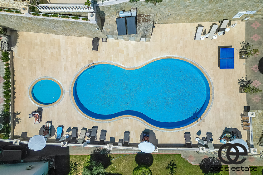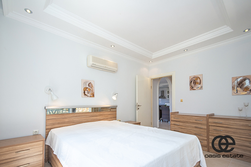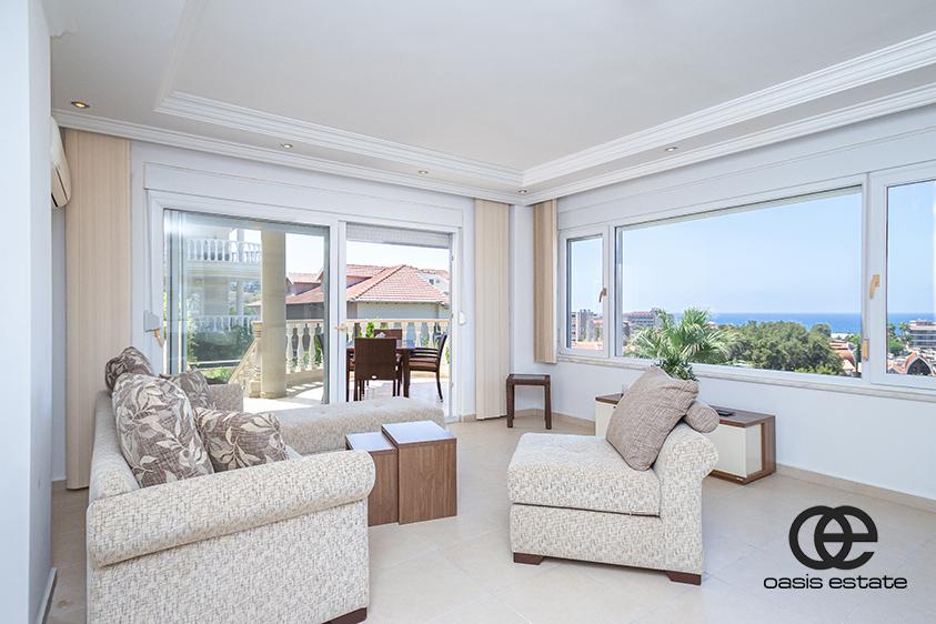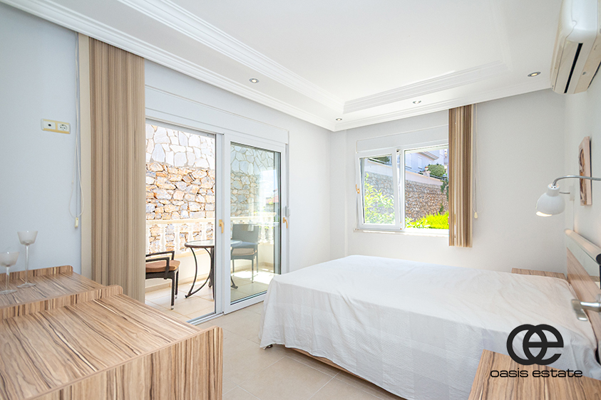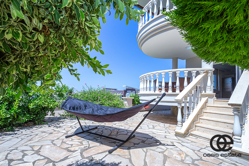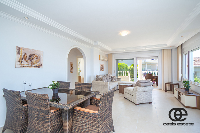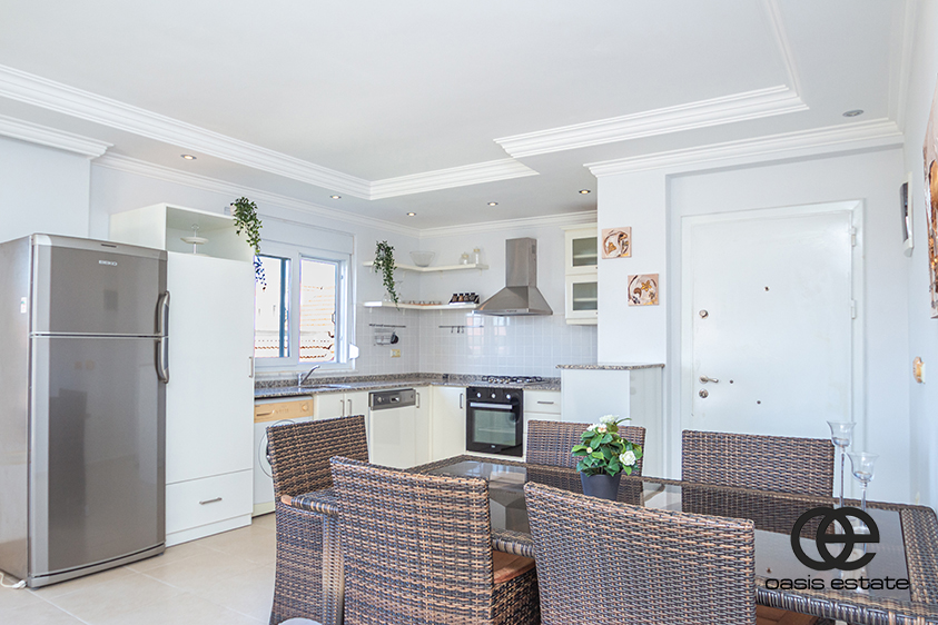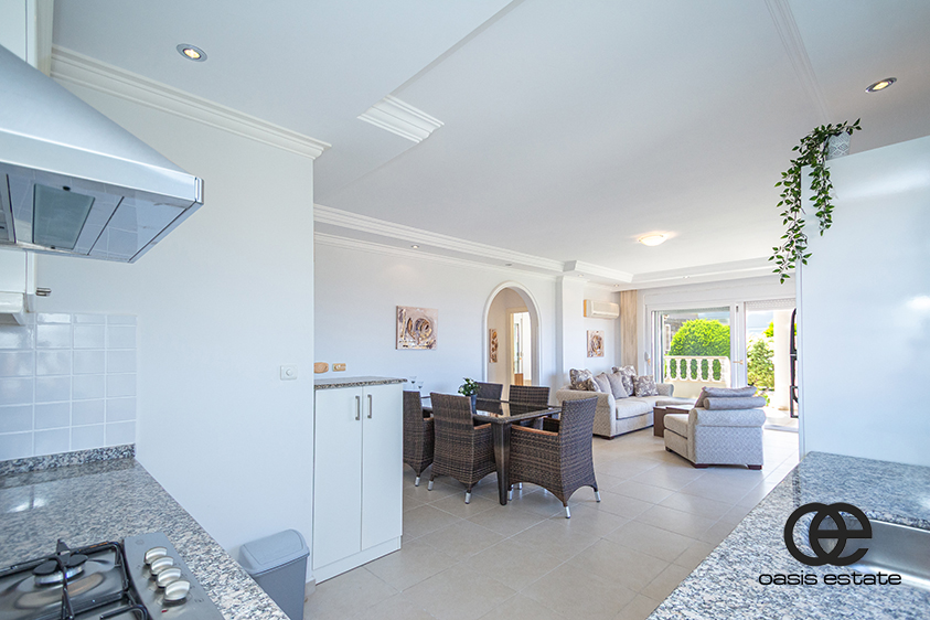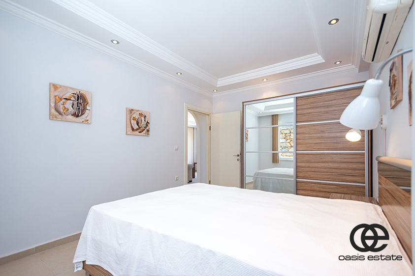 Located in the well-maintained Uygun Konak Beach residential complex, this 2-bedroom garden apartment offers a comfortable and practical living space just a short walk from the beach in Konaklı, Alanya.